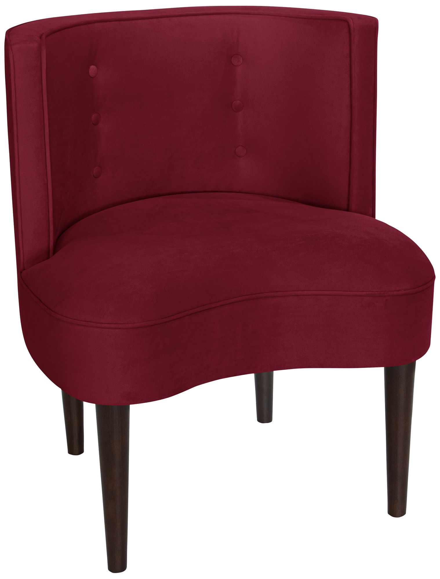 Elaborating on the classic chesterfield chair design this plush high back velveteen chair creates an accent piece that is both off kilter and elegant. Velvet upholstered modern accent chair with open rounded back and gold metal feet. The chair is made of roche bordeaux velvet, which makes the chair look elegant the eichholtz ermitage red velvet accent armchair is a perfect addition to your lounge or living interior. Accent chairs > lounge chairs.